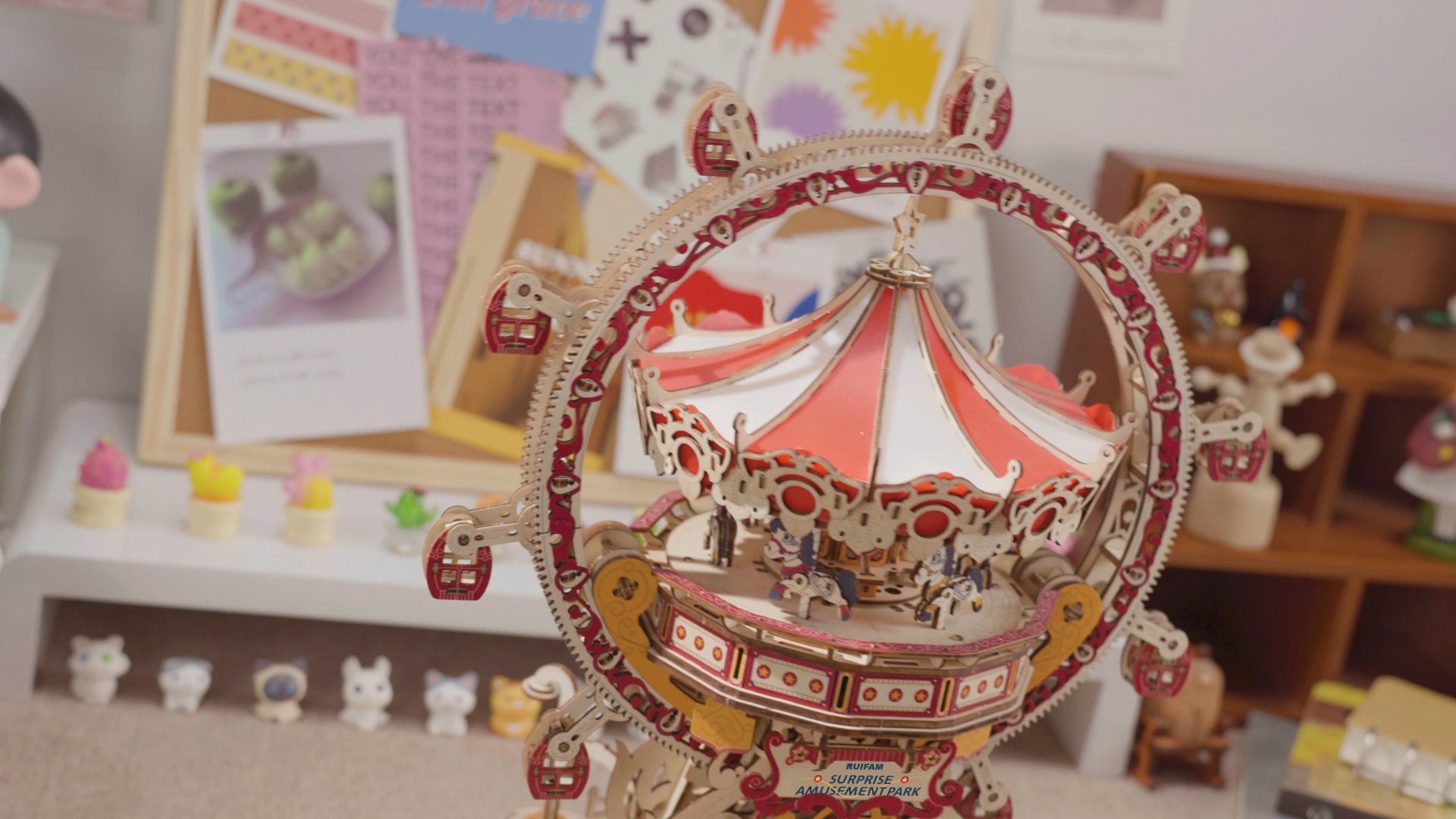 Ruifam 3D Puzzles for Adults, Wooden 3D Puzzle Model Surprise Amusement Park Music Box Toys Building Kits, DIY Wood Crafts Cool Toy Hobbies for Men Women, Creative Assembly Gifts